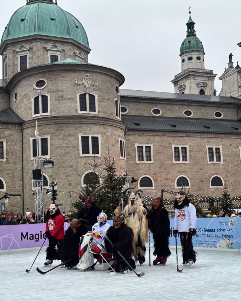 団体は30周年を迎える。原点はGünter氏が紙を貼って作った貼り子のような仮面であった。クランプスの仮面や装束に憧れて独学で作り始めた。現在はClemens氏が代表を務める。みな趣味の集まりであり、装束一式は自費で購入しているそうだ。クランプスのシーズンが近づくと仕事も休暇を取って大忙しだ。ザルツブルク大聖堂前に設置された舞台ではGünter氏の台本によるニコラウス劇が披露され、クランプスラン(クリスマスマーケットをクランプスたちが練り歩く)に参加する全ての団体と衣装を紹介するパフォーマンスが行われた。この時期モーツアルト広場に登場するアイススケートリンクでは、地元に拠点を置くアイスホッケーチームのECレッドブル・ザルツブルクとクランプスによるアイスホッケー対決が行われた。クランプスの一挙一動がとても面白い。何より驚かされたのがその全ての司会進行を彼らが行うことだ。伝統を継承していくためのユニークなアイディアと情熱に心震えた。